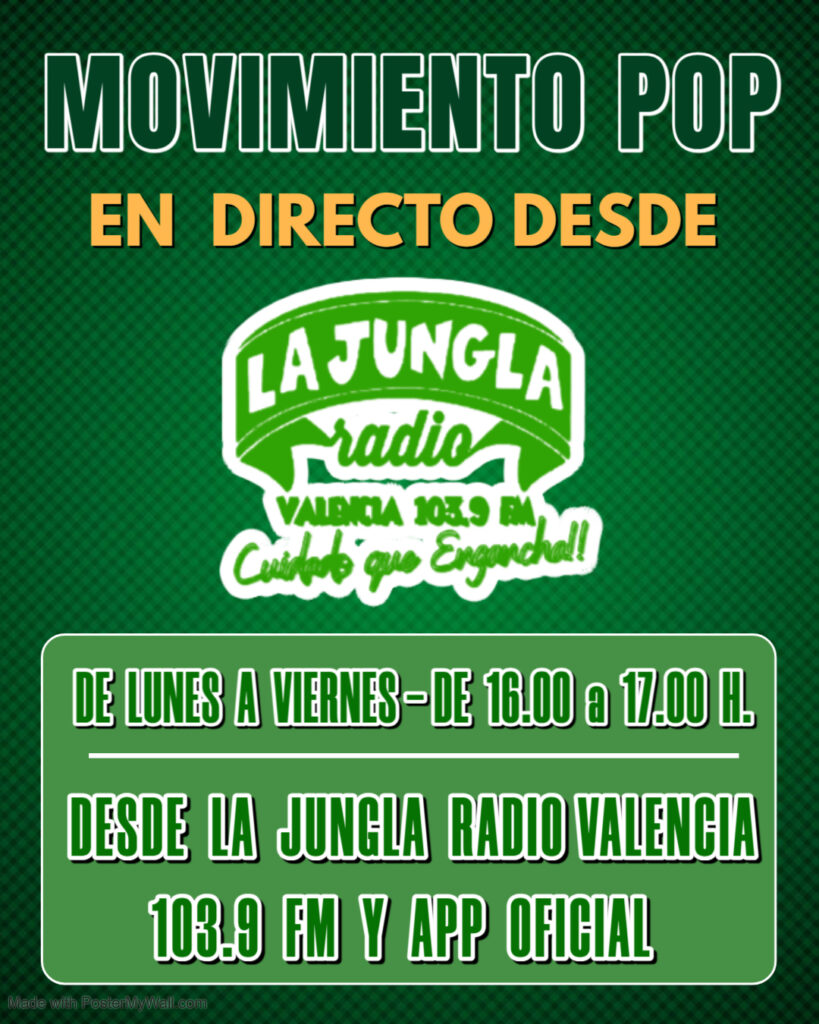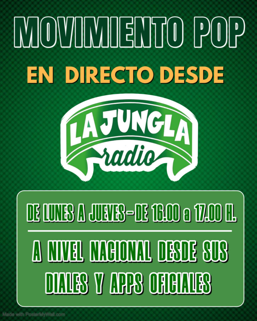 Movimiento Pop es tu cita con la mejor música. Únete a nosotros de lunes a viernes de 16:00 a 17:00 en directo desde La Jungla Radio y prepárate para un viaje sonoro a través del pop nacional e internacional de todos los tiempos. Sintoniza y déjate llevar por los éxitos que marcaron época, los himnos que te hicieron bailar y las baladas que se convirtieron en la banda sonora de tu vida.